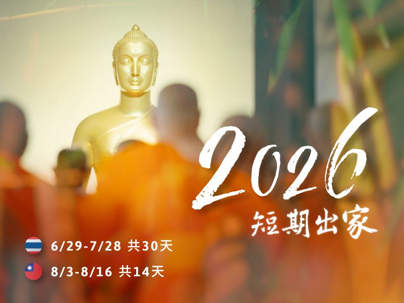 2026 短期出家🪷踏上南傳佛教實修之旅 短期出家 / 佛法課程, 台中分院, 台北分院, 國際佛法薪傳者, 桃園分院, 泰國法身寺, 靜心課程, 高雄分院 / 2026 年 2 月 19 日 在繁忙的現代生活中,我們是否曾停下腳步問過自己:生命的真正意義是什麼? 兩千五百多年前,年輕的悉達多太子放棄了 […] 2026 短期出家🪷踏上南傳佛教實修之旅 閱讀全文 »