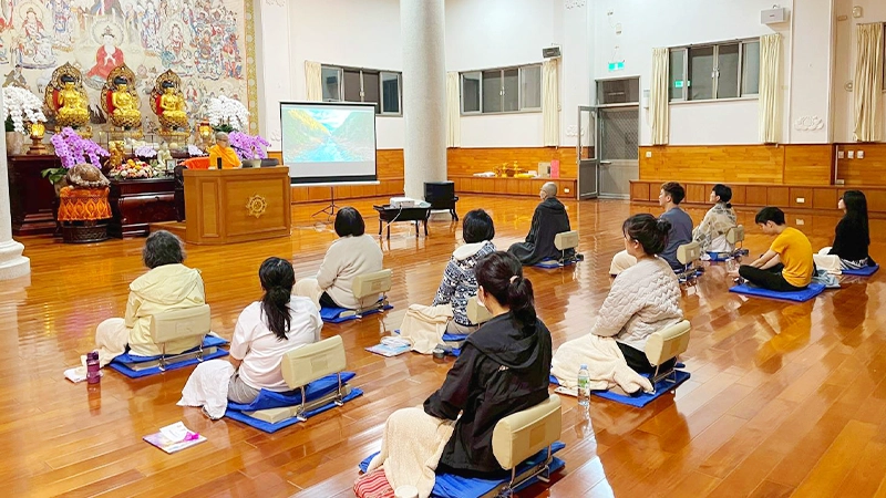 除了靜坐,我們也透過佛法課程,重新省視人生。從「善惡業與今生來世」,到「人生目標」,這些看似深奧的主題,其實都緊密地與日常生活相連。當理解了因果與選擇的關係,很多原本的焦慮與迷惘,也開始慢慢鬆動。當心更清明更有力量,就會感覺到,有時候不是問題消失了,而是我們比較知道該怎麼面對了。
